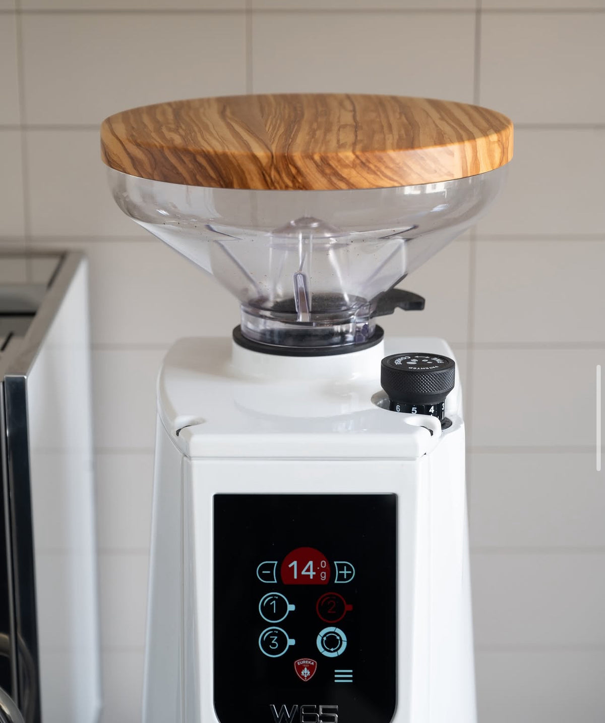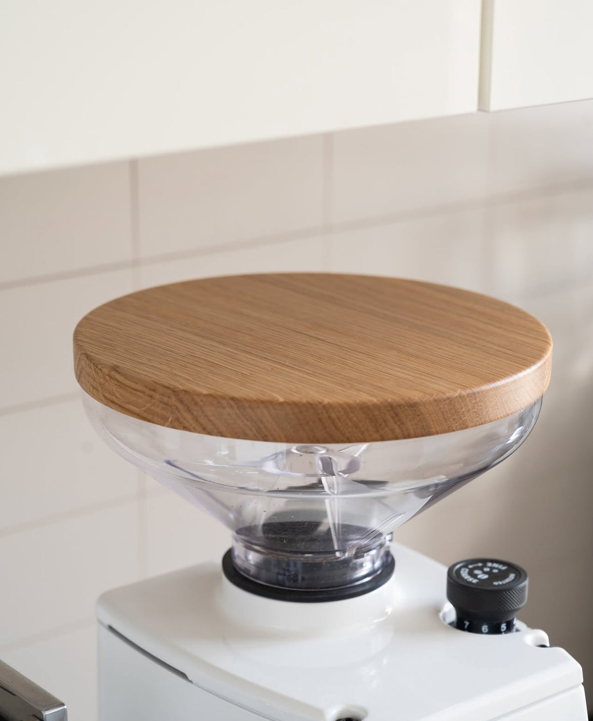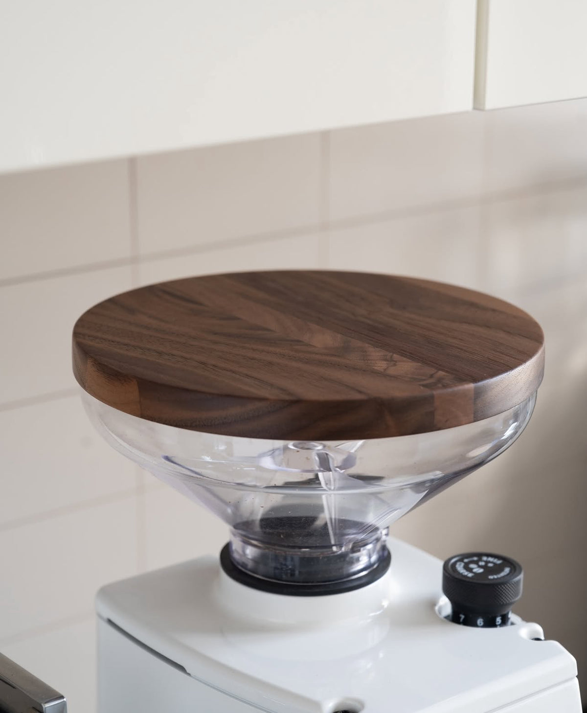 Améliorez votre moulin à café avec un élégant couvercle de moulin de Wiedemann Fabriqué à la main en bois massif et conçu pour s'adapter Eureka Atom Le récipient de 300 g est parfait, tant sur le plan fonctionnel qu’esthétique.