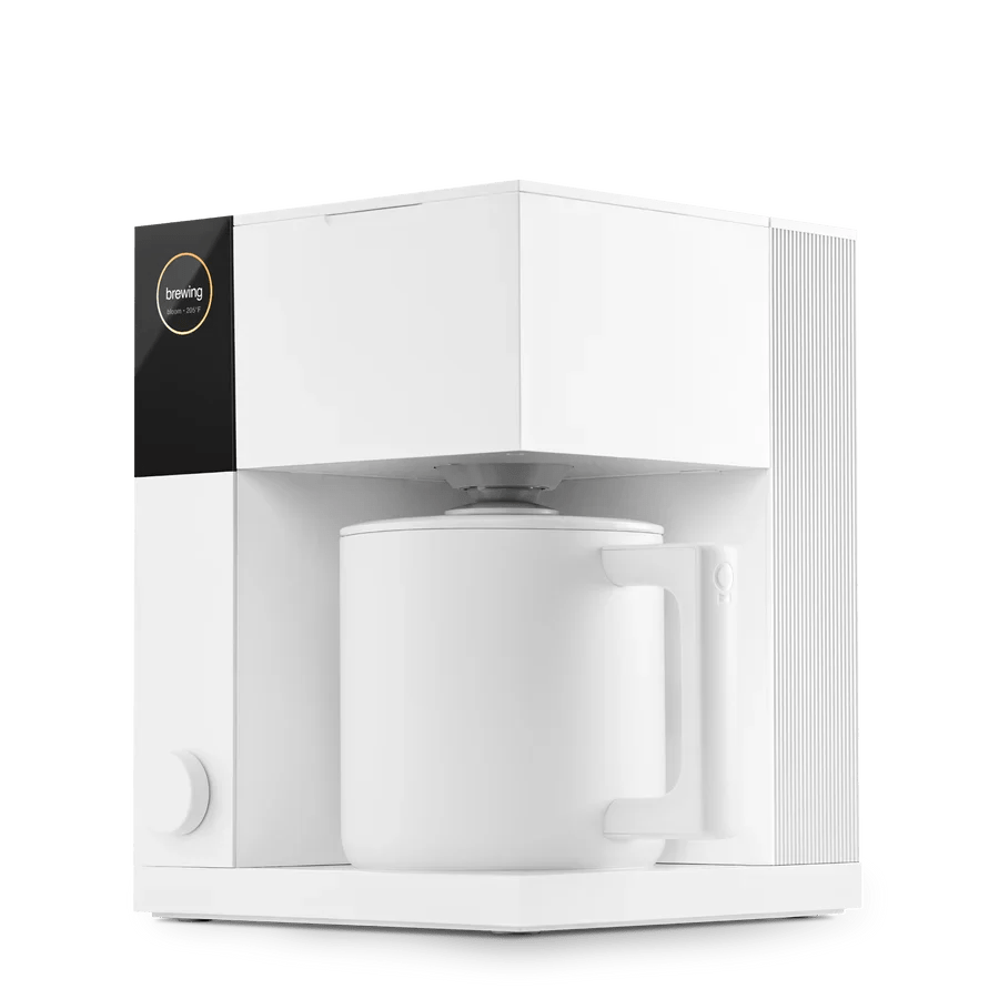 Le Fellow Aiden Brewer en blanc glace pour-over Préparation perfectionnée et automatisée. Conçue pour ceux qui apprécient un excellent café sans se soucier de la préparation manuelle, Aiden vous offre un contrôle total sur les paramètres les plus importants : température, timing, floraison et saturation.