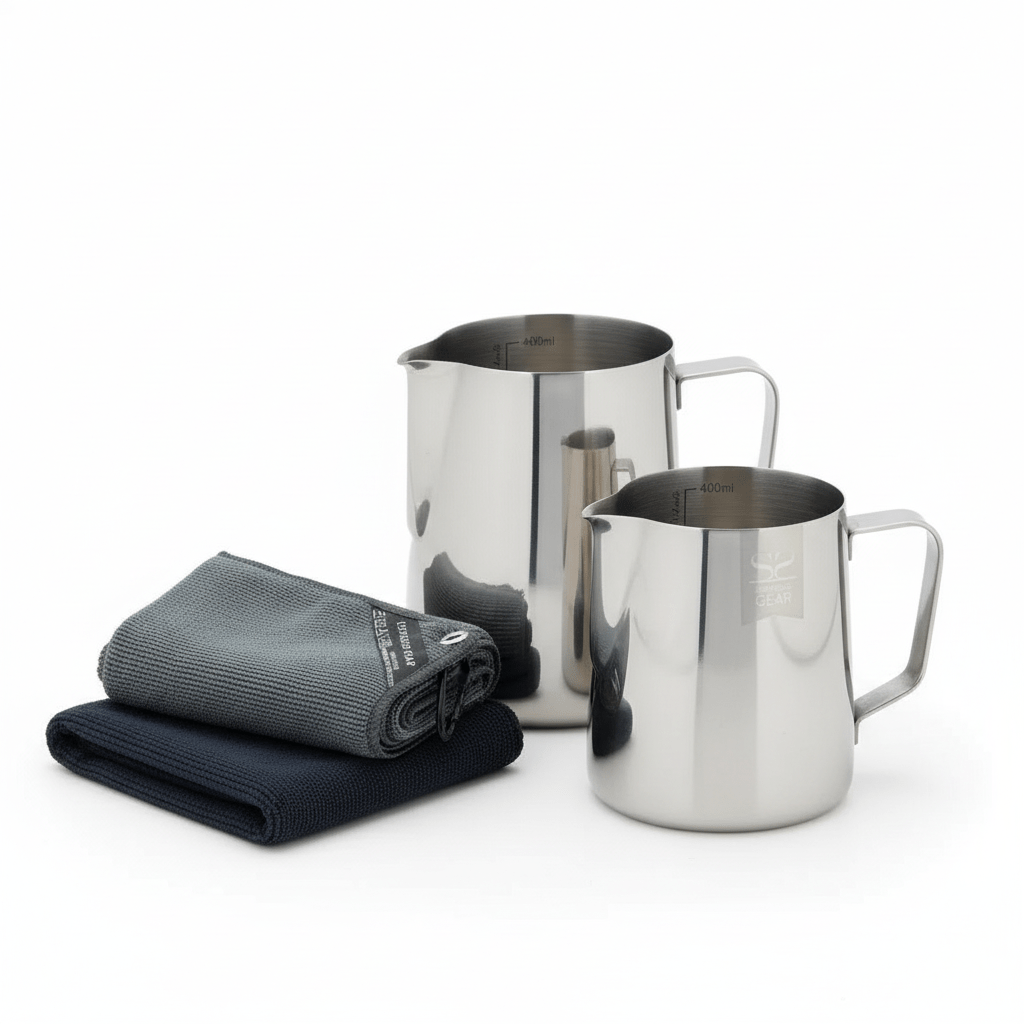 Barista Kit de démarrage - 2 cruches à lait & 3 serviettes Barista
