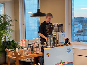 Oxbacken offre une tasse ronde et robuste où les saveurs de cassis et de mûres rencontrent des notes douces de chocolat et de noix. La fruité des grains colombiens élève la tasse tandis que les grains brésiliens apportent corps et douceur.