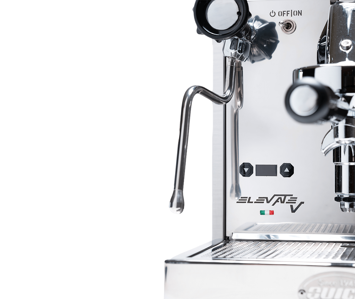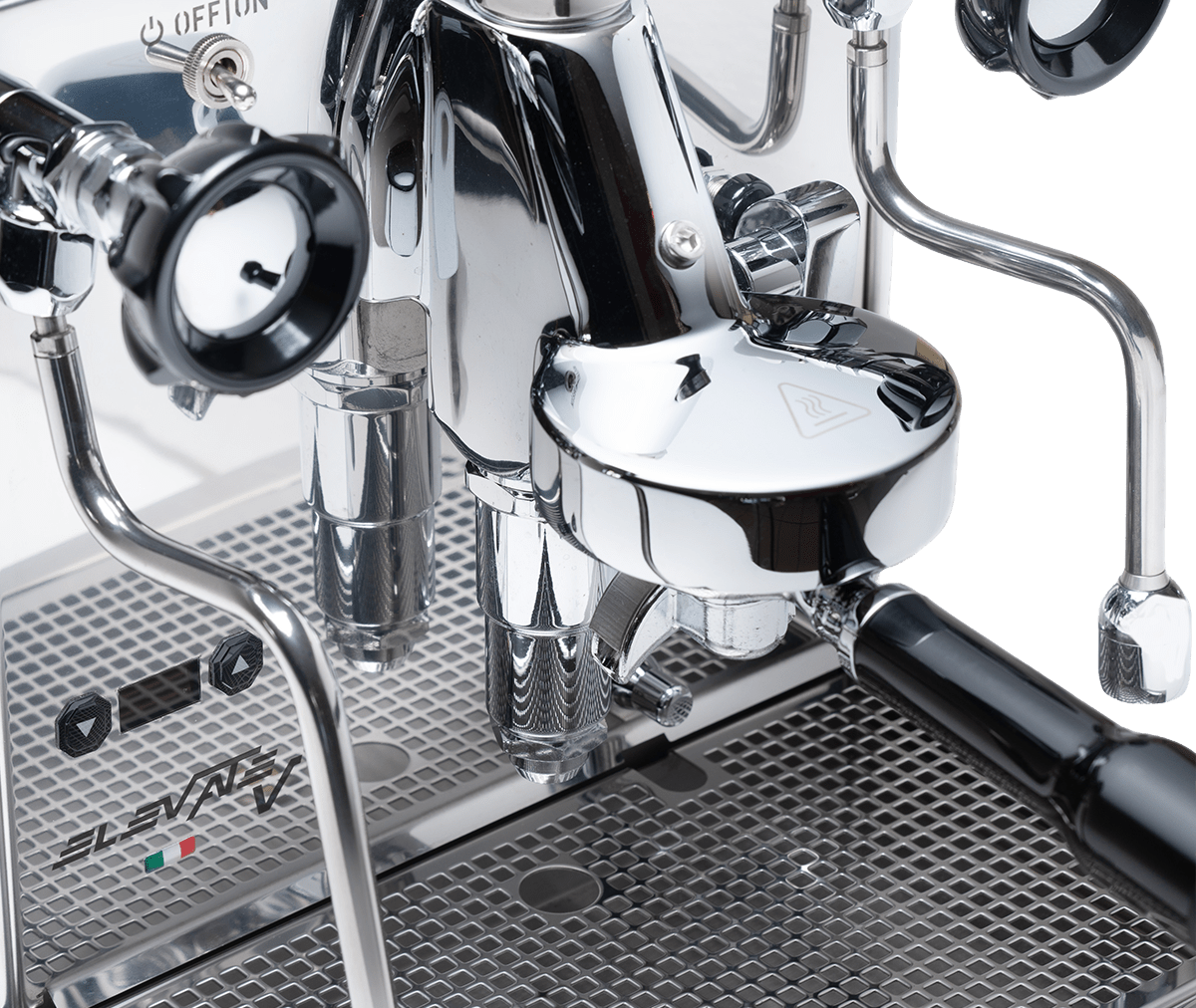 L'Elevate V est équipée des vannes ergonomiques exclusives de Quick Mill ainsi que des tubes anti-brûlure — parfait pour la texturation du lait et une manipulation plus sûre.