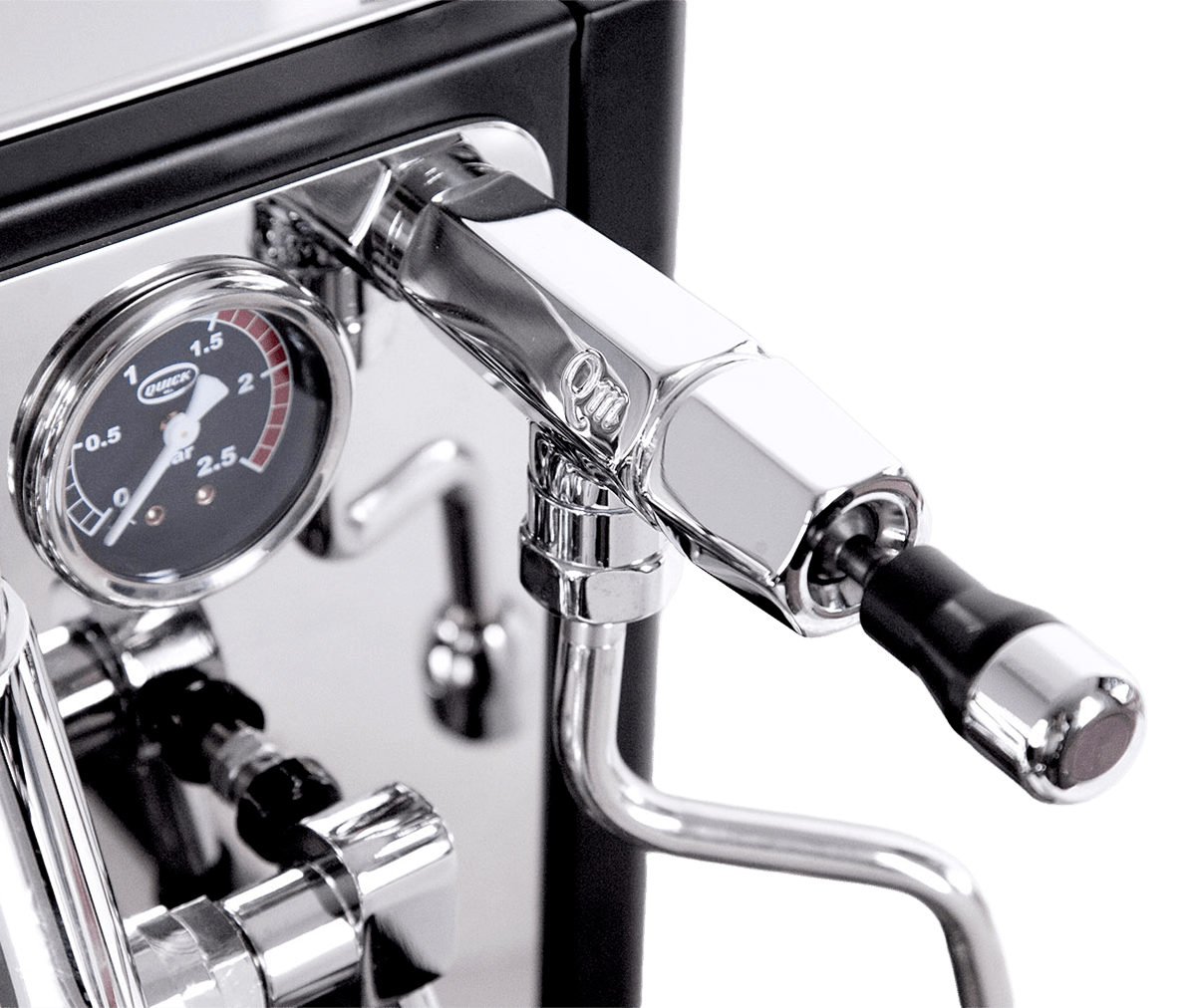Des manomètres séparés affichent la pression de la pompe (0–16 bar) et la pression de la chaudière (0–3 bar). Cela offre une vue parfaite pour affiner l'extraction.