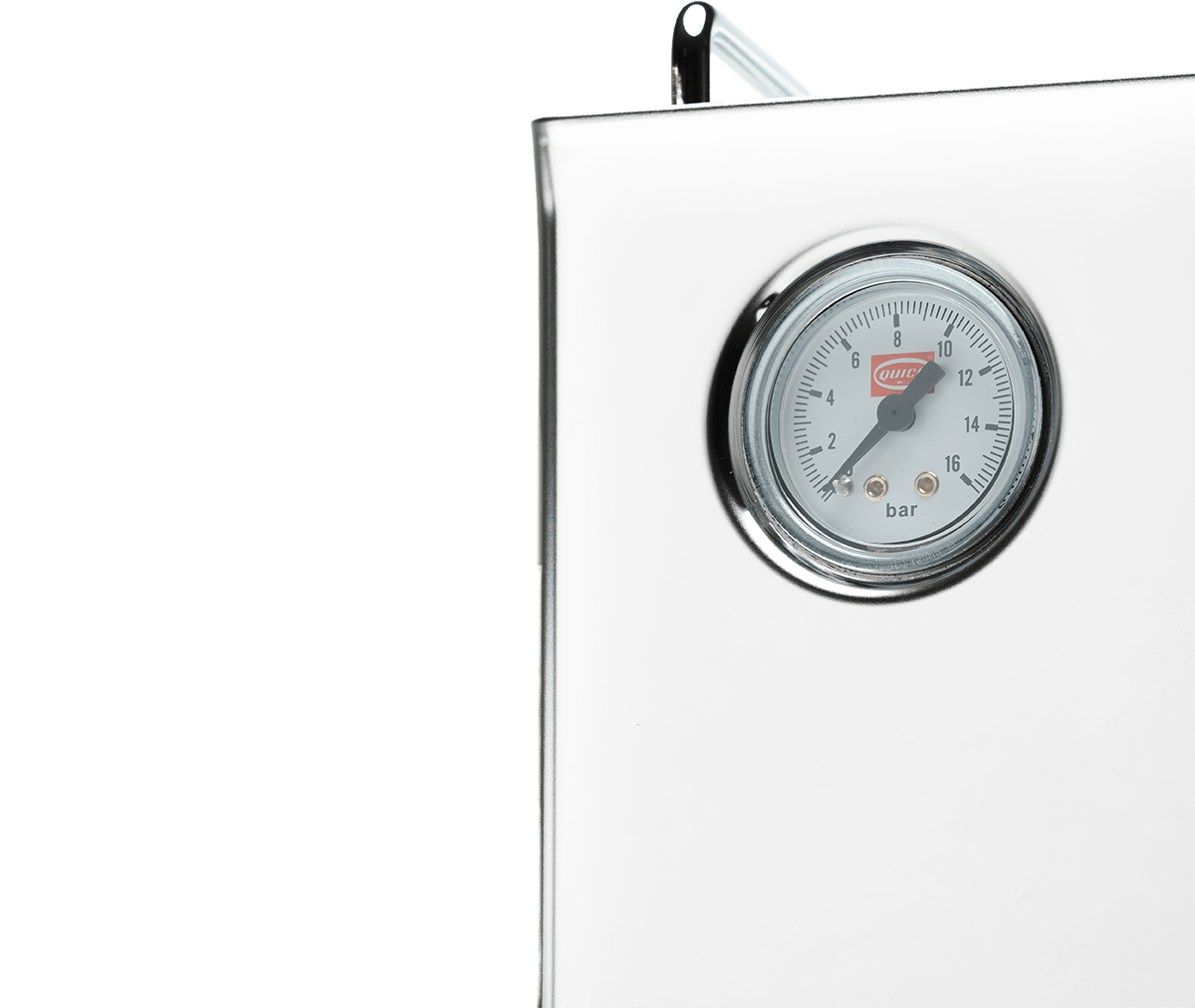 Le manomètre intégré (0–16 bar) affiche la pression d’extraction en temps réel et vous aide à ajuster la mouture, le dosage et le tassage pour un shot optimal.