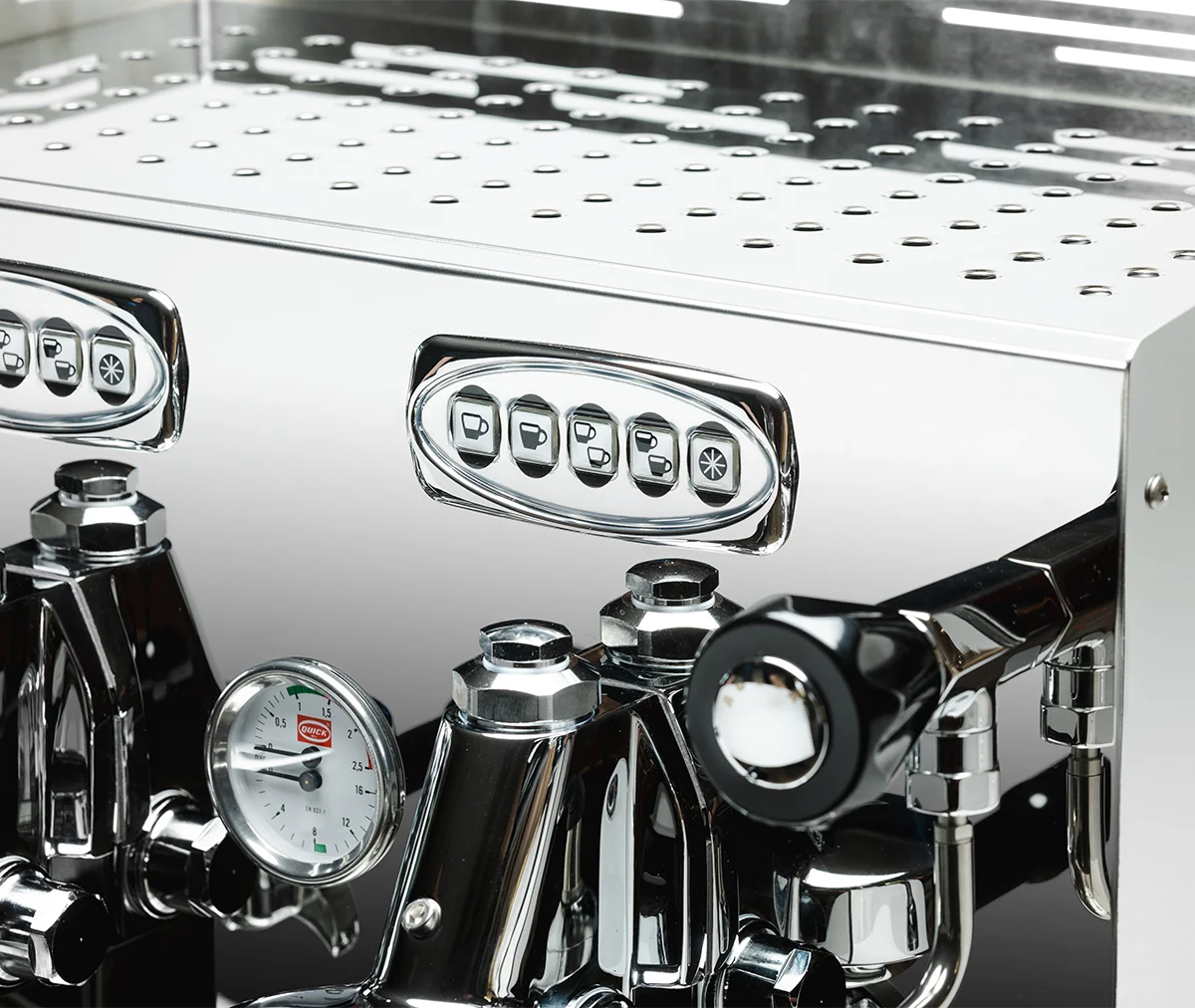 Quick Mill Uragano est une machine à espresso commerciale avec deux groupes d’extraction, un système d’échangeur de chaleur et une pompe à rotation pour des performances régulières et puissantes. Un choix parfait pour les cafés et établissements nécessitant une capacité fiable en période de forte affluence.
