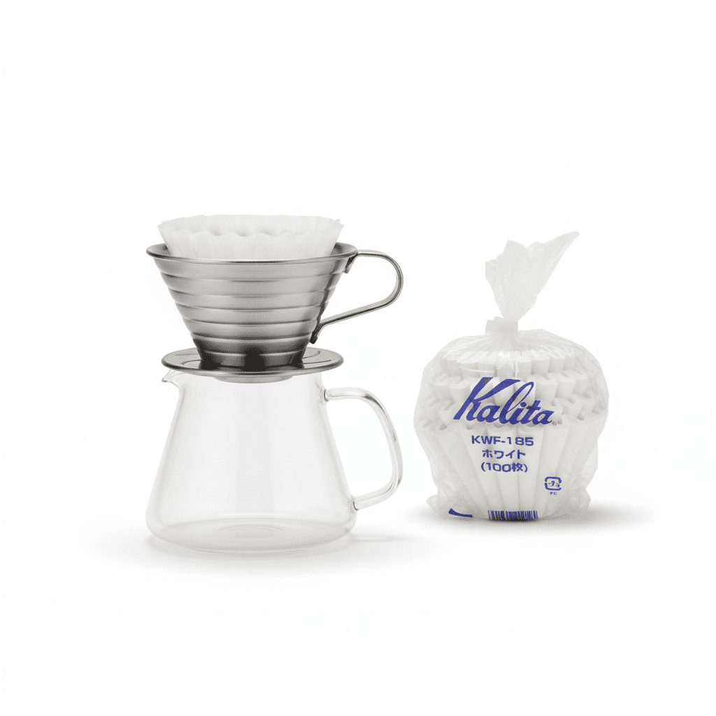 - Filtres en papier (100 pièces) – Filtres en papier blanchis naturellement pour la série Kalita 185, optimisés pour une tasse de café pure et équilibrée. Parfait pour 2 à 4 tasses.