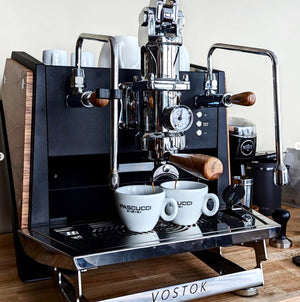 - Infusion automatisée: Vostok One Group dispose d'un système de dosage révolutionnaire qui automatise presque entièrement la phase d'infusion. Après avoir abaissé le levier, la pré-infusion commence et la machine prend le relais pour garantir que seule la bonne quantité de café se retrouve dans la tasse.